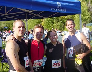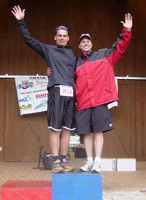 Just three days before the race I talked Adam into upgrading to Olympic, which he did. This is us after race, celebrating