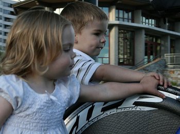 Darien and Grace check out my super-fast Zipp disk wheels. Man, what a difference those new
