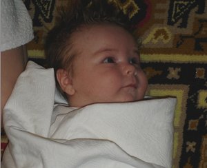 Grace taking a break after her bath Cedar Hills, UT 11-15-2005 |