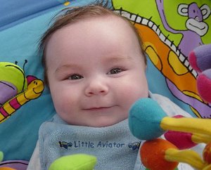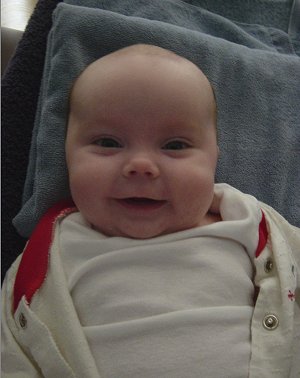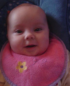 Grace showing off her cute blue eyes and bald head! University Mall, Orem, UT 12-8-2005 |