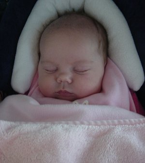 Grace in her car seat getting ready to go to California for Thanksgiving Cedar Hills, UT 11-23-2005 |