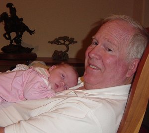 Grace chills out with Papa (Grandpa Oborn a.k.a. The Closer) after her Thanksgiving bottle La Quinta, CA 11-24-2005 |