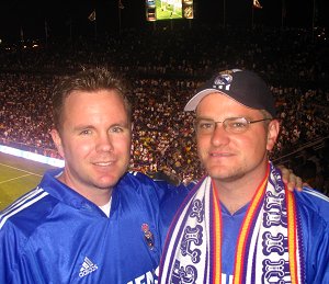 Ben McKee and I reveling in the Real Madrid victory. Home Depot Center - Los Angeles, CA 7-18-2005 |