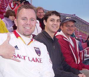Me, James Knight (ShopforT1 Sales Manager), Ben McKee (Mission Companion) taking in the Real Salt Lake game. Salt Lake City, UT 4-30-2005 |