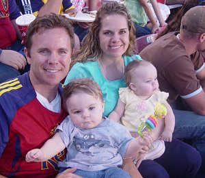The twins enjoying a great night of soccer with mom and dad. Rice-Eccles Stadium - Salt Lake City, UT 8-2-2006 |